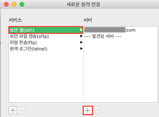 3. 보안 셸(ssh)를 선택하고 아래에 [+] 버튼을 누른다.