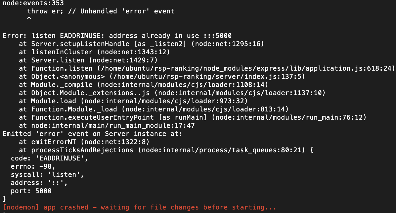 NodeJS address already in use 문제 해결 방법 Error: listen EADDRINUSE: address already in use :::5000 현재 다른 프로세스에서 사용 중이라 해당 서비스를 시작할 수 없다는 에러입니다.