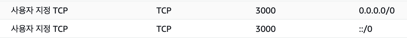 나는 클라이언트를 spa로 작업했는데 빌드한 파일을 보여주려면 S3같은 정적리소스 서버를 별도로 파거나, 현재의 EC2에 별도의 웹서버를 띄워줘야 하는거 같다. 그래서 일단은 개발시 로컬로 작업할 때 처럼 실행했는데 해당 리액트 프로젝트가 3000번 포트로 띄워졌기 때문에 웹브라우저로 접속하려면 AWS 해당 인스턴스의 보안그룹에서 3000번 포트를 열어줘야 한다.
